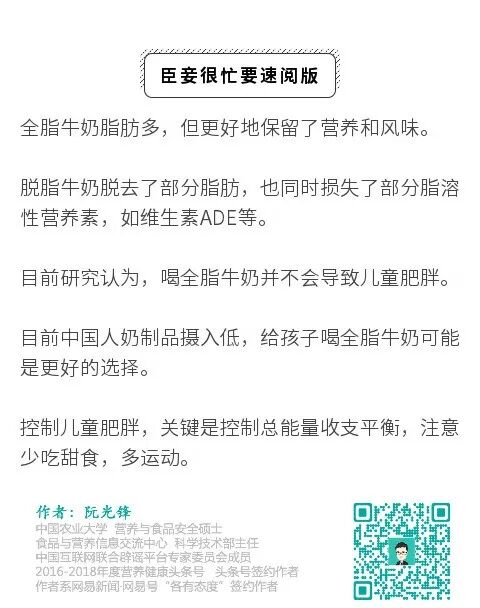 其次,全脂牛奶的营养价值更高,对中国儿童是益大于弊。