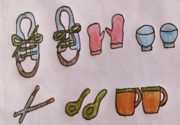 生活中有不少情况需要我们运用配对的技能来完成,家长可以利用这些机会来训练孩子。例如:穿袜子时,出示一只袜子,让孩子找出另外一只相同的袜子。除了用袜子,我们还可以用鞋子、手套、杯子、勺子、碗等孩子常见的物品进行配对。