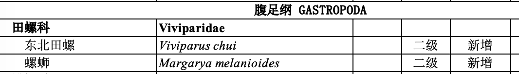 别急,名录中的“田螺”和“螺蛳”,并不是我们平时会吃到的田螺和螺蛳,看完这篇你就明白了。