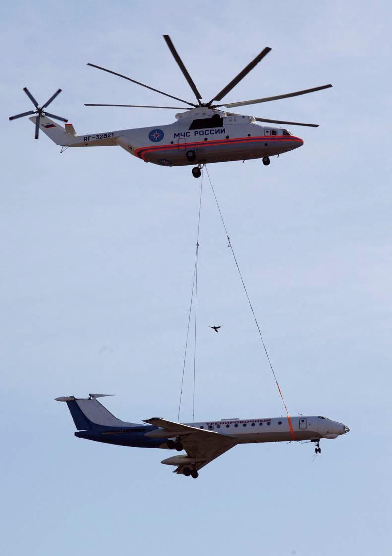 ▲ 俄罗斯紧急情况部的米-26直升机吊运客机。