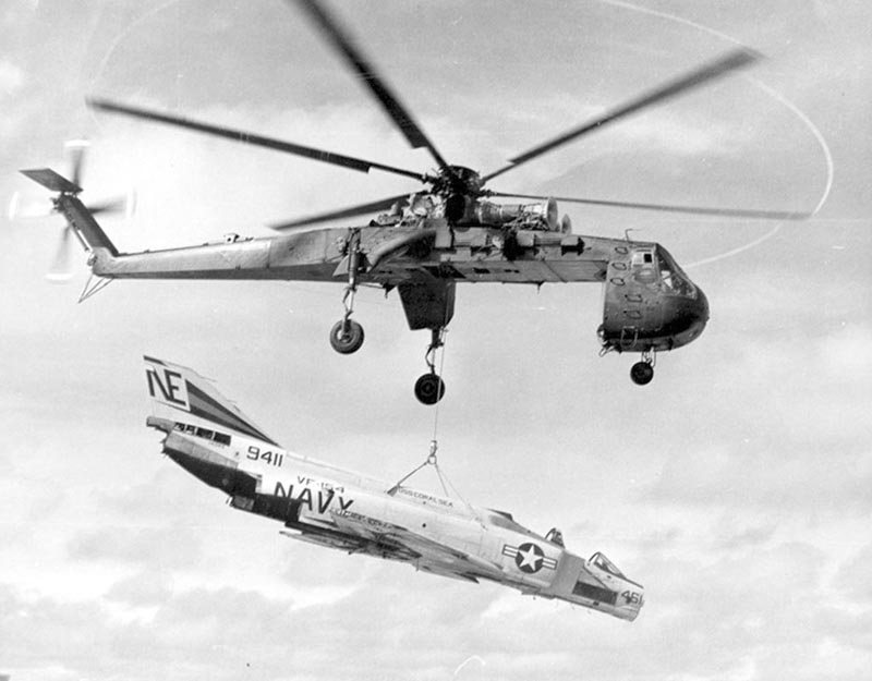 ▲ CH-54分别正在吊运F-4“鬼怪”战斗机机体。