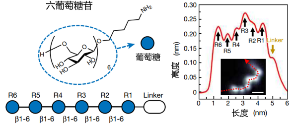 由此,研究者得到了多糖分子的图像。图像里的明暗表示了平面上多糖分子每个单体的高度,由此可以得到多糖分子的空间结构。