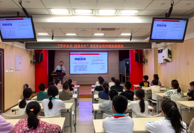 王主任以促进青少年身心健康,降低近视眼发生率为首要目标,分别从“什么是近视?”、“如何尽早发现视力异常?”、“如何防控近视?”等方面内容展开讲座,建议孩子们多参与户外运动,并分享了如何科学预防近视的小妙招,受到广大师生的热烈欢迎和一致好评。
