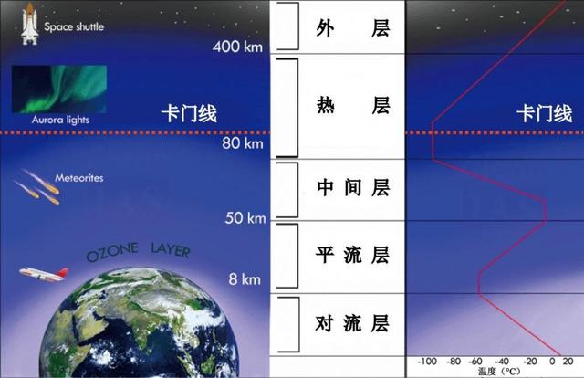 地球大气层很厚,真正的大气层内外没有明确的分界线,到了1.6万千米高空,还有大气分子存在。但大气主要集中在对流层,也就是海平面以上10~16千米以下,这里聚集了大气层75%的大气,而在平流层,也就是40千米以下,聚集了97%的大气。在海拔100km以上时,空气密度约地表的220万分之一,温度约-80℃,气压已经接近零。随着海拔进一步升高,空气就会越来越稀薄,最终只剩下每立方米几个粒子。