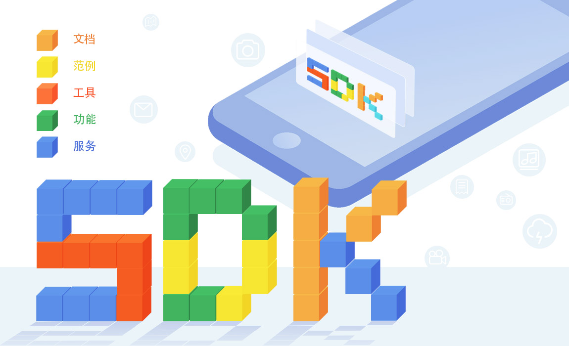 SDK,英文名称为Software Development Kit,即软件开发工具包。广泛来说,它是辅助开发某一类软件的相关文档、范例和工具的集合。而对手机来说,通常情况下,SDK是在APP中提供某种功能或服务的插件。它就像是一种通用的功能或者服务模块,可以作为插件方便地嵌入到不同的APP中使用。