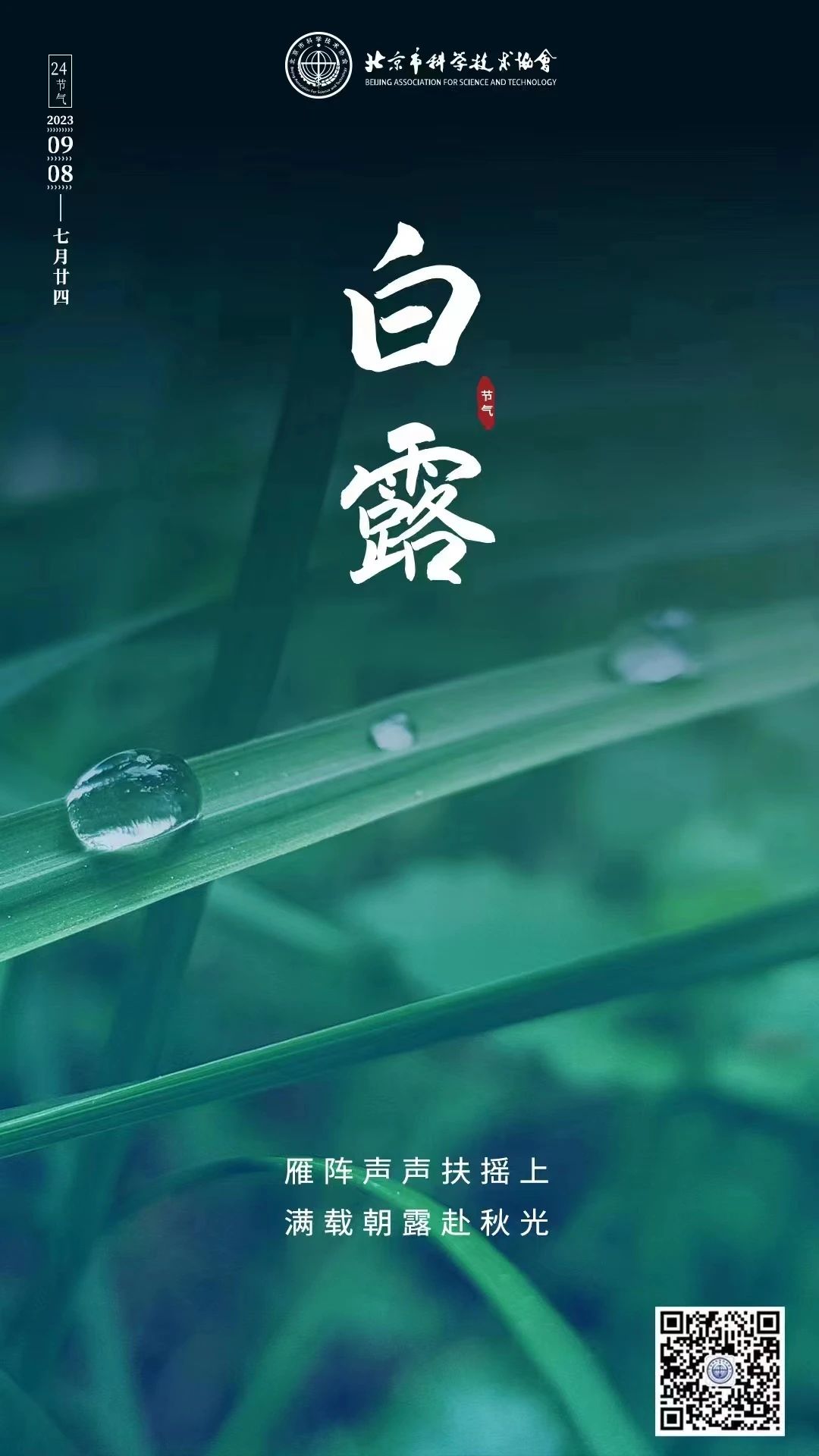 “明月青山夜,高天白露秋”。今日,我们迎来二十四节气中的第十五个节气,也是秋季的第三个节气——白露。“白露秋分夜,一夜凉一夜”。时至白露,秋风渐起,凉意渐浓,昼夜温差逐渐变大,一夜凉过一夜。