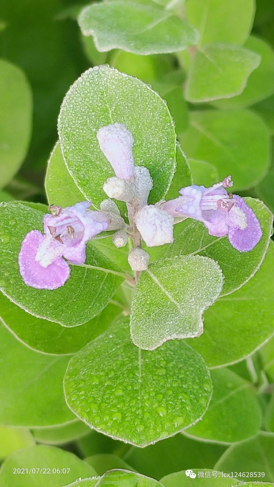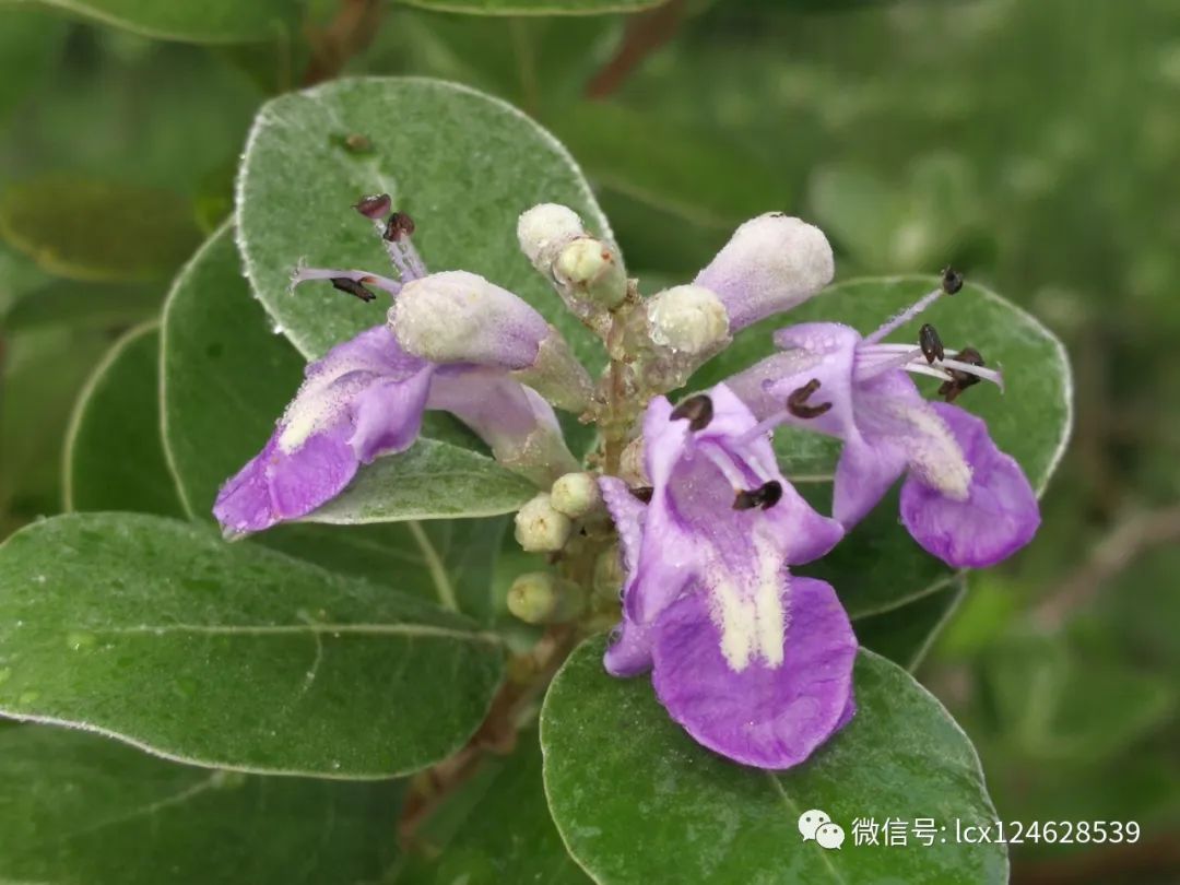 3、多花顶生成圆锥花序,花序梗密被灰白毛,花萼5浅裂,外面被绒毛,二唇形花冠淡紫色至蓝紫色,花冠管内有较密的长毛,二唇形,下唇中裂片较大,4枚雄蕊伸出花冠外。