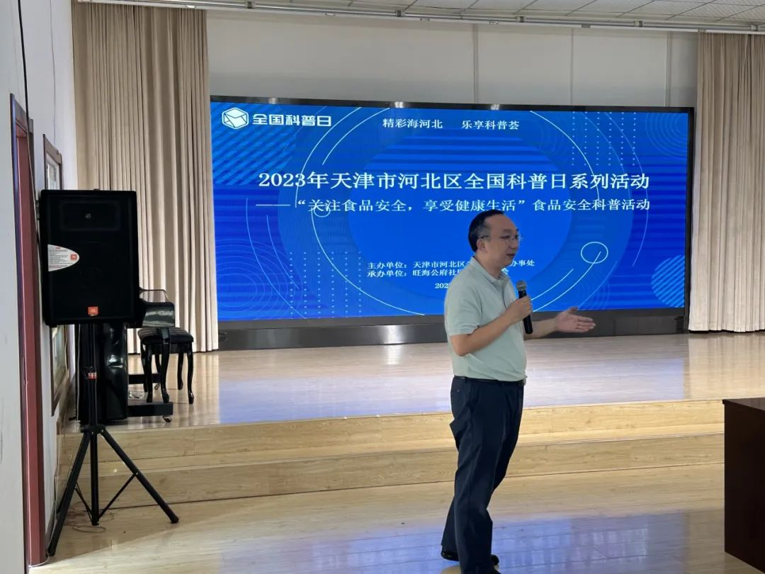 日前,光复道街旺海公府社区举办食品安全进社区活动,邀请天津天狮学院食品工程学院副教授王俊全,为社区居民进行食品安全知识科普。