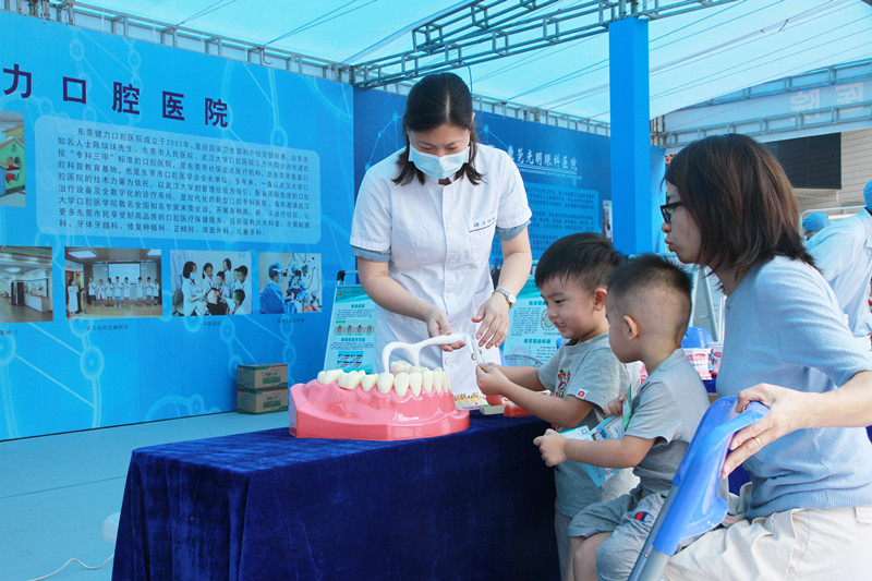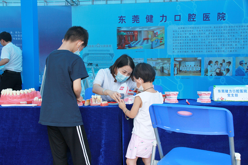 2020年9月26日,由东莞市科学技术协会、东莞市莞城街道办事处、东莞市卫生健康局主办的 2020东莞市全国科普日大型活动之“科技引领·健康生活”主题活动在莞城科书博广场及东莞人民公园正门广场顺利开展。东莞健力口腔医院作为东莞市科普教育基地,也积极参与其中,为东莞市民带来免费口腔义诊服务与趣味宣教互动活动。