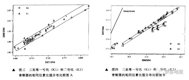 其一:三星堆的铅同位素比值数据较为接近,可以判断它们的原料来源于同一个矿产地;