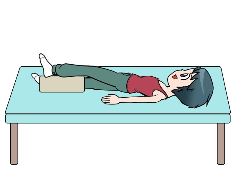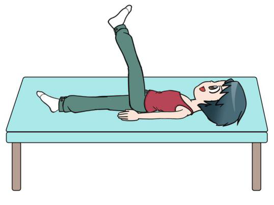 1.1.仰卧位:患肢抬高到膝关节正后方处再向大腿近端延伸约10厘米(图中红色竖线标记)。