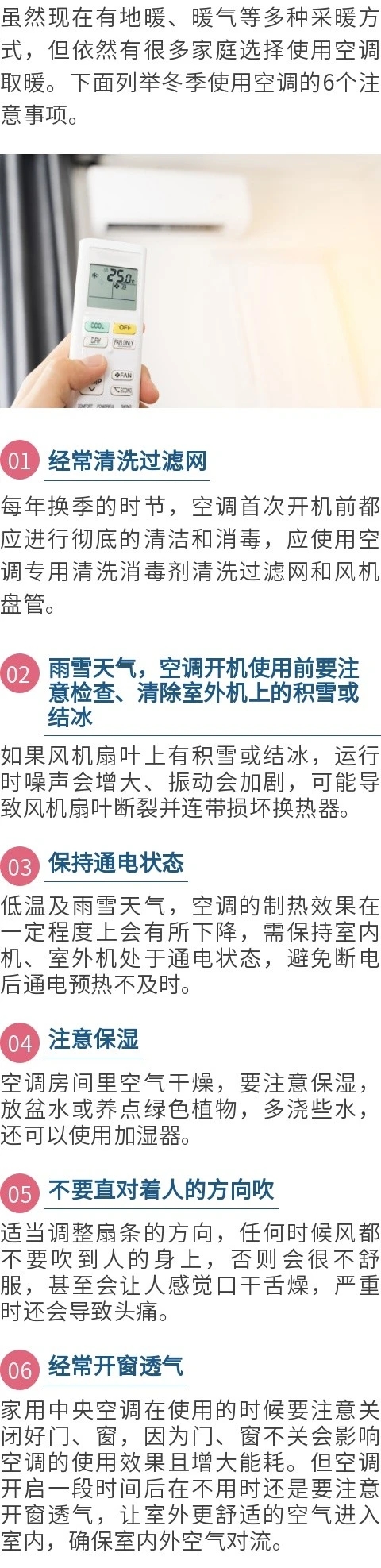 冬季使用空调的6个注意事项