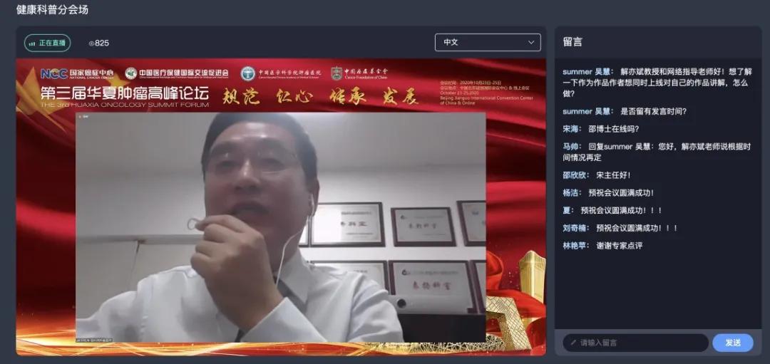短短3个小时的会议同时在线的最高人数达900余人,依托华夏肿瘤高峰论坛和医促会科普分会为广大医务工作者搭建一个优秀的科普宣传平台,虽不能展示所有优秀的作品,但健康科普分会将通过华夏肿瘤论坛和中国医促会的平台继续致力于推动医学健康的科普宣传,继续将优秀作品投放到平台,推动中国健康科普事业发展,促进国民健康!
