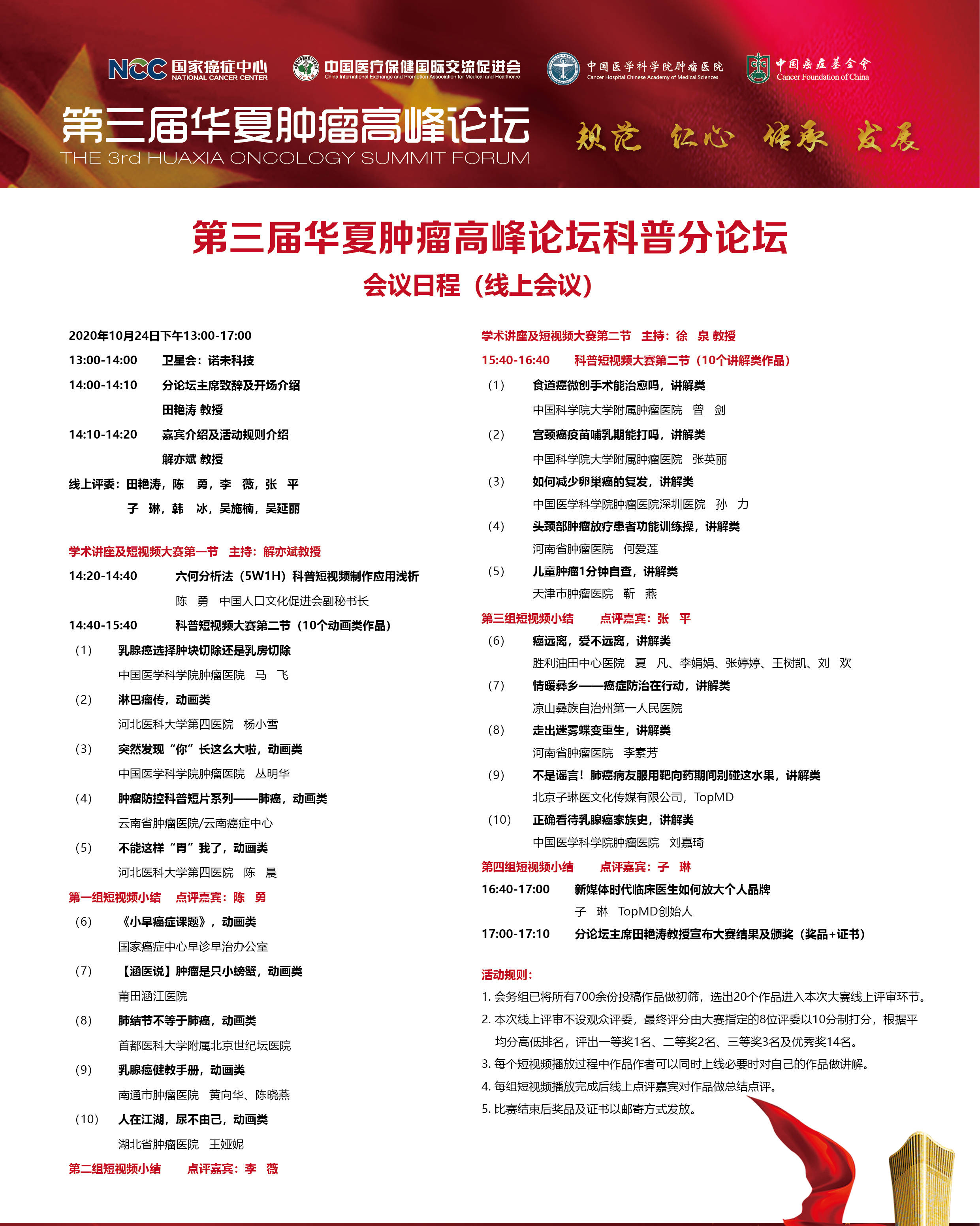 金秋十月,中华民族在对抗新冠肺炎的战役中取得了巨大阶段性胜利,在当前新冠肺炎疫情防控常态化的情况下, “ 第三届华夏肿瘤高峰论坛 ” 于 10 月 24 日在国家会议中心胜利召开。