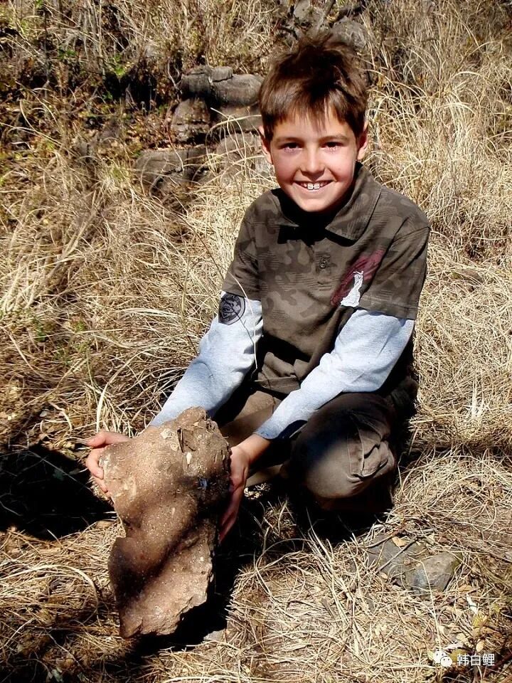李伯杰的儿子马修捧着南非古猿源泉种化石