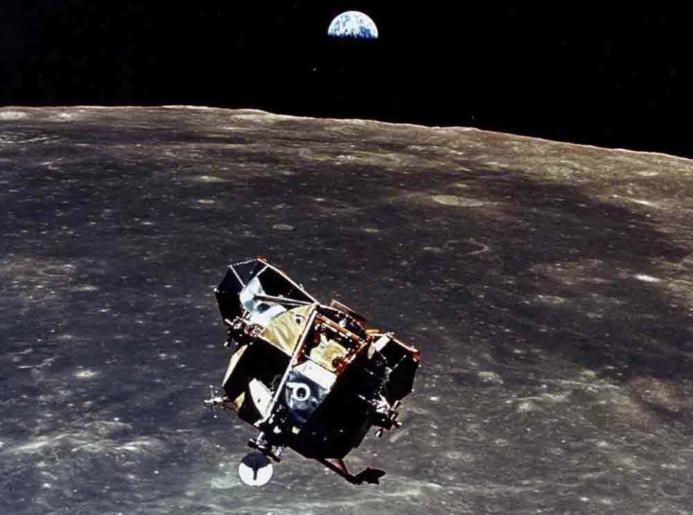 虽然月球上没有空气,但升空反而更加容易,因为没有了空气,也就没有了阻力,且月球的引力要比地球小得多,只有地球引力的六分之一左右,所以登月舱根本不需要火箭发射塔,只需要将登月舱的下降段作为发射架,上升段就可以顺利点火升空了。升空以后的登月舱会非常轻松地进入环月轨道,并与等候在那里的服务舱以及指令舱实现对接,之后服务舱点火,同样是在近乎于真空的宇宙中利用所产生的反作用力回到地球轨道。