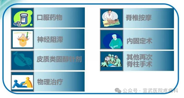 需要特别说明的是,FBSS治疗的关键是针对术后常见病因详细分析,多角度综合治疗。而导致FBSS发生的原因有很多,症状也不限于疼痛。无论从病人角度还是从医生角度,都切忌盲目二次手术或盲目进行感觉神经毁损,从而增加后续治疗的复杂性。来源:宣武医院疼痛科