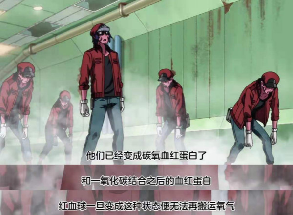 在肺部工作的细胞告诉红细胞,这些污垢是由吸烟引起的。尼古丁是烟草的重要成分,可以使人体产生欣快感进而成瘾,还可对呼吸系统产生刺激,导致炎症反应,以及高血压、心律失常等心血管系统疾病和胃十二指肠溃疡等胃部疾病。烟草燃烧时还会产生氰化合物、焦油和一氧化碳等2000余种有害成分,刚刚造成红细胞丧失携氧能力的一氧化碳,就是因为这副身体的主人又在吸烟了。