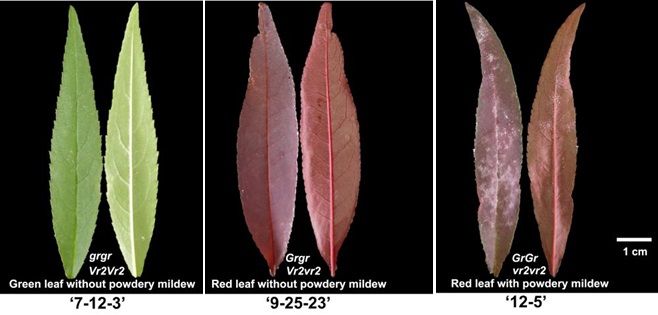 3种不同基因型桃叶片的叶片颜色表型和抗/感病表型。中国农科院郑果所供图