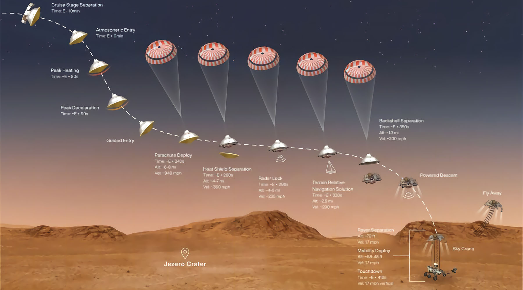 探索火星并不容易,那最困难的部分在哪里呢?乘坐过飞机的人都知道,飞机有两个时刻是最为危险的,一是起飞、二是降落,这些飞在天上的机器似乎都有着相同的特性,对于毅力号火星探测器而言,最危险的时刻同样也是登陆火星的过程。