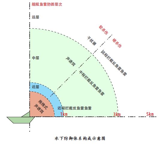 水下防御体系基于覆盖较为完备的鱼雷预警系统,采用各种声呐实现对于来袭鱼雷的报警,并自动完成对来袭鱼雷的特征参数进行估计和预报,根据解算和智能决策,采取相适应的软/ 硬对抗措施实施防御。