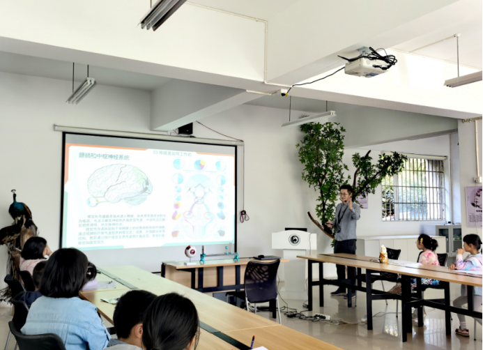 4月19日,昆明动物博物馆开展了“神奇的眼睛,探索动物视觉世界”科学课,策划设计了人类视觉原理、动物视觉的差异及进化、眼动仪体验及费纳奇镜的制作等科学体验环节。