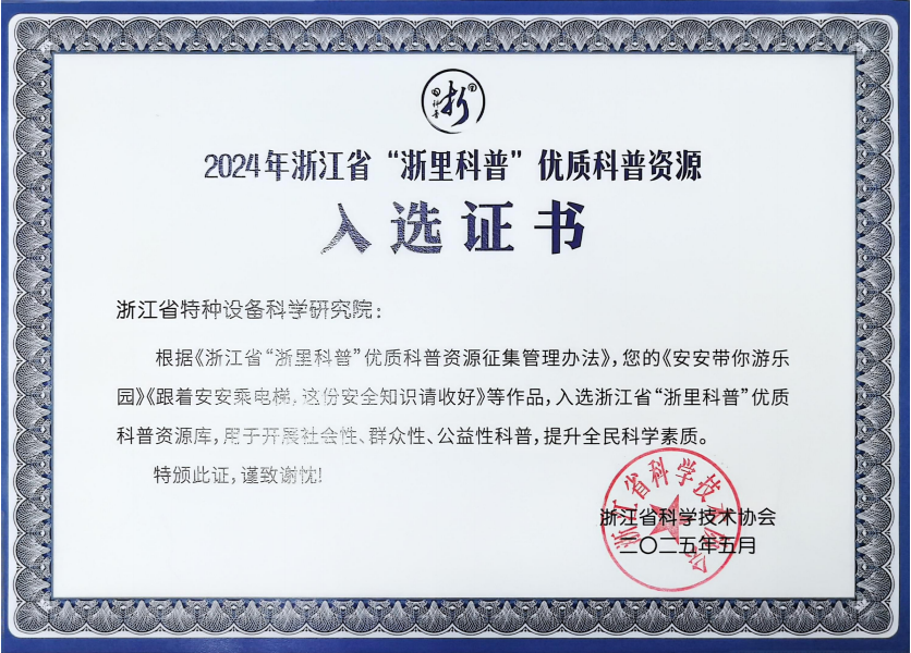 近日,省特科院独立创作的《安安带你游乐园》《跟着安安乘电梯,这份安全知识请收好》两部作品,入选浙江省“浙里科普”优质科普资源库。