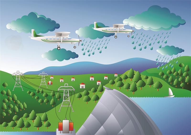 实际操作中,人工降雨主要通过两种途径实现:一种是利用高炮、飞机、火箭,将催化剂在合适时段按照所需要的剂量输送到云层合适的部位,以此改变云体内水珠的分布状态,促使其快速凝结成较大雨滴,加速降水过程。