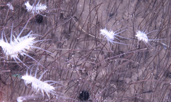 在堪察加海沟拍摄的管状蠕虫。(中国科学院深海科学与工程研究所供图)