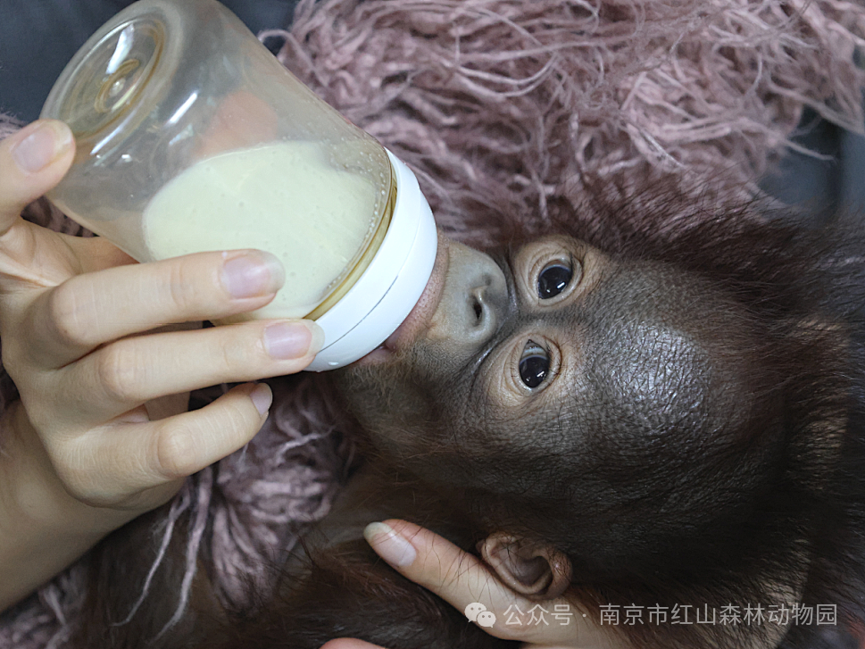 喂奶时,饲养员会穿上特制的“猩猩背心”,通过触感让她更安心进食,这些照料措施,想为毛阿妹营造最接近自然成长的人工育幼环境。