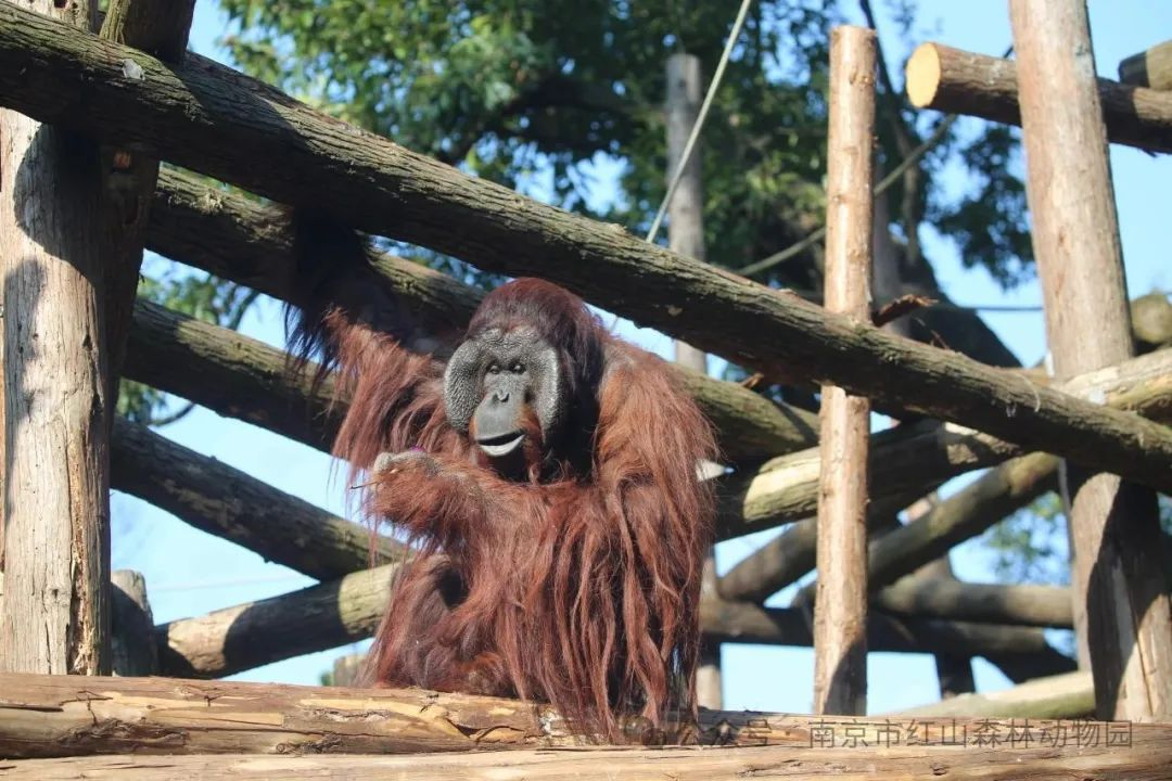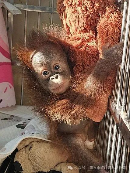 小窝旁边固定的毛绒猩猩模型,成了她练习攀爬的“好伙伴”,她用前肢抱着模型躯干,后肢蹬着模型腿往上爬,动作虽然还有点笨拙,但一直努力尝试呢。