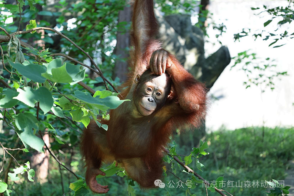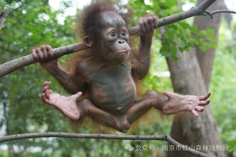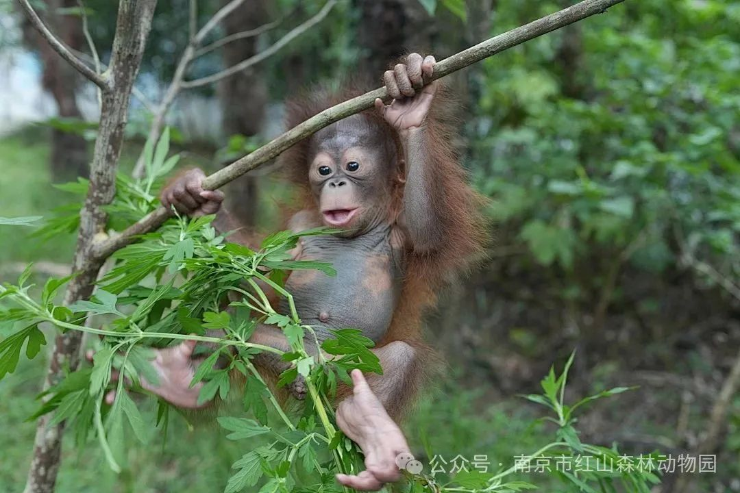 而刚升级为哥哥的毛百万则不同,他原本挂在树丛里晃悠,一瞅见新面孔,跟按了加速键似的,抓住树枝“嗖”地一下荡下来,顺着树干“蹭蹭蹭” 就蹿到了跟前。