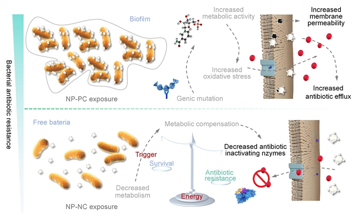 纳米塑料在环境中广泛分布,对微生物的适应性产生潜在影响。该研究发现,高浓度(50毫克/每升)暴露下,正电荷纳米塑料显著增强了细菌抗生素耐药性,而负电荷纳米塑料则抑制其耐药性演化。进一步研究发现,正电荷纳米塑料通过诱导氧化应激和激活外排泵功能的双重途径显著增强细菌耐药性,同时促进耐药基因的垂直传递和水平转移;而负电荷纳米塑料则通过抑制生物膜形成和扰乱细菌代谢,触发代谢补偿效应,从而抑制耐药性演化。该研究阐明了纳米塑料表面电荷与细菌耐药性之间的分子关联,为科学评估两者复合效应提供了新的理论视角。