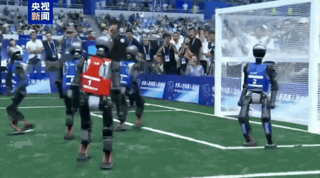 运动会上,足球比赛吸引了众人目光。其中,全程自主AI运行5V5足球赛在全球范围内尚属首次。