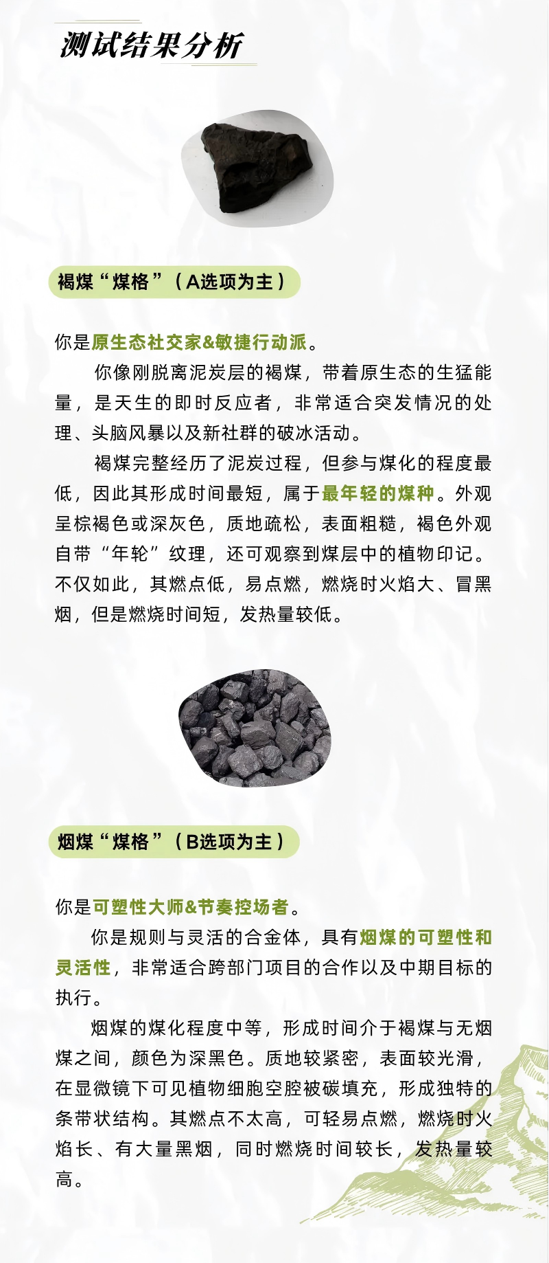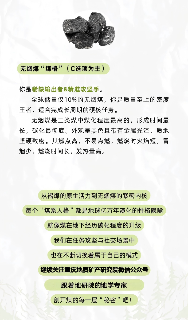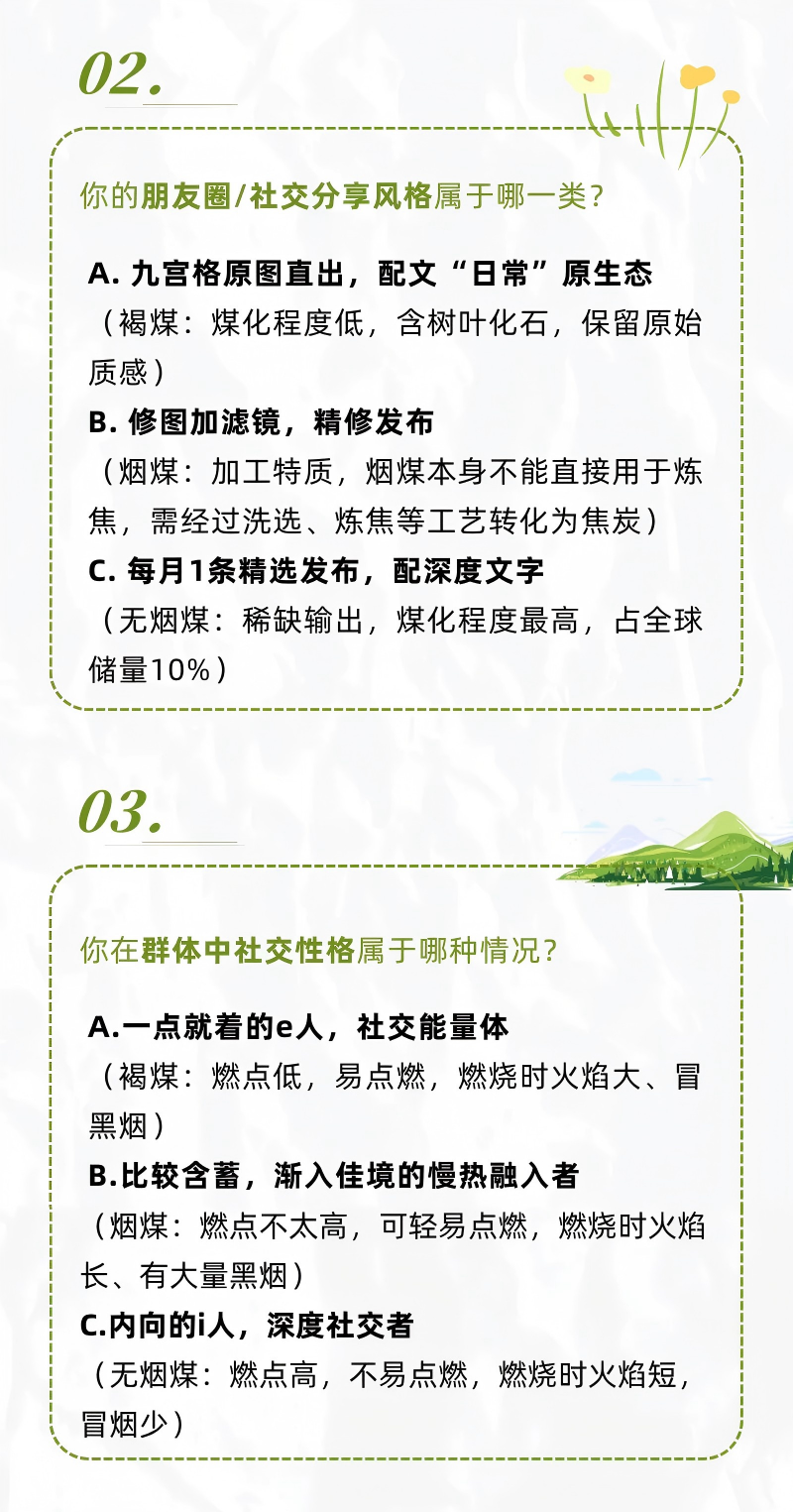 这“煤”系人格测试好有趣!把性格比作不同煤种,从温和褐煤到炽热焦煤,既形象又好懂,一下就get到自己的“能量特质”啦!