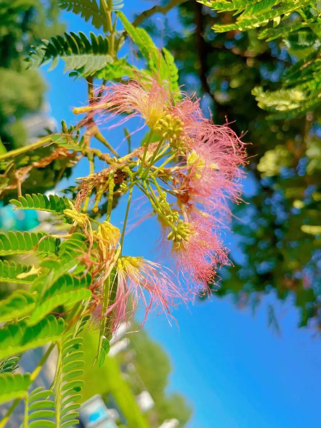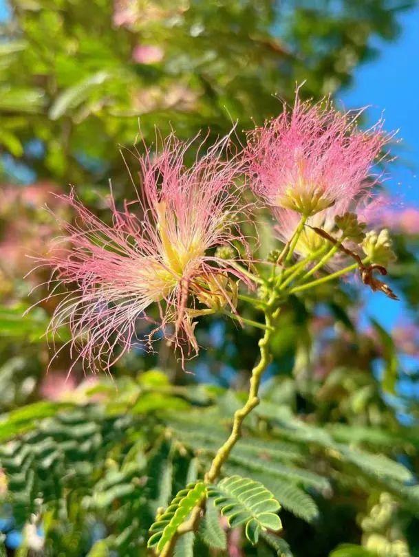 夏季,合欢花开始盛开,满树粉色毛绒绒,非常具有观赏性,但这些粉色绒球并不是一个花朵,而是由许多小花组成的花序。