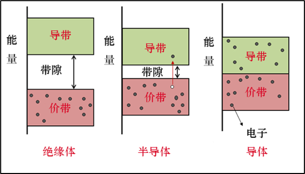 绝缘体、半导体和导体的能带示意图。 来源:learnelectronicswithme.com