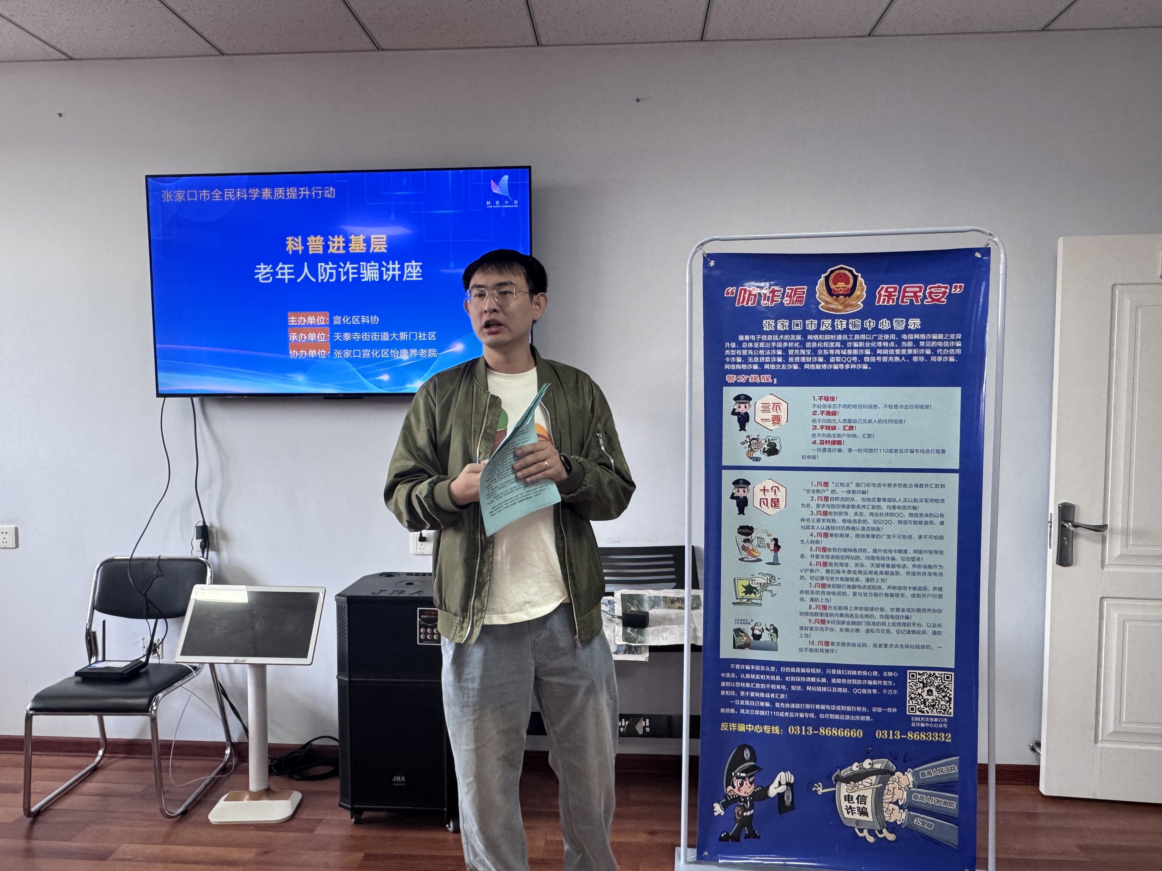 9月10日,在全国科普月活动深入推进之际,宣化区科协联合宣化区天泰寺街街道大新门社区走进怡康养老院,共同开展了一场层次丰富、内容扎实的反诈专题宣传活动,旨在助力老年人跨越“数字鸿沟”,增强防诈骗意识,切实保障其财产安全。