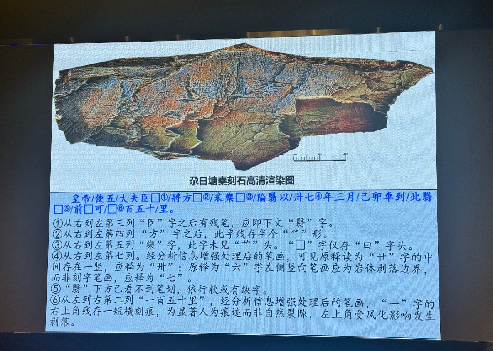 9月15日,国家文物局召开发布会,介绍青海省玛多县尕日塘秦刻石调查研究有关情况。2025年6月8日,《光明日报》刊发了中国社会科学院考古研究所仝涛研究员《实证古代“昆仑”地理位置—青海黄河源发现秦始皇遣使“采药昆仑”石刻》一文,引发广泛关注与讨论。国家文物局迅速安排中国文化遗产研究院、青海省文物考古研究院组建工作专班,调集石质文物保护、秦汉考古、古文字学和书法篆刻等领域专业人员集中科研攻关,两次赴现场调查,获取了石刻本体与赋存环境等科学数据,组织多学科专家两次召开论证会,多角度论证形成专家意见。经审慎研究,认定为秦代石刻,定名为“尕日塘秦刻石”。