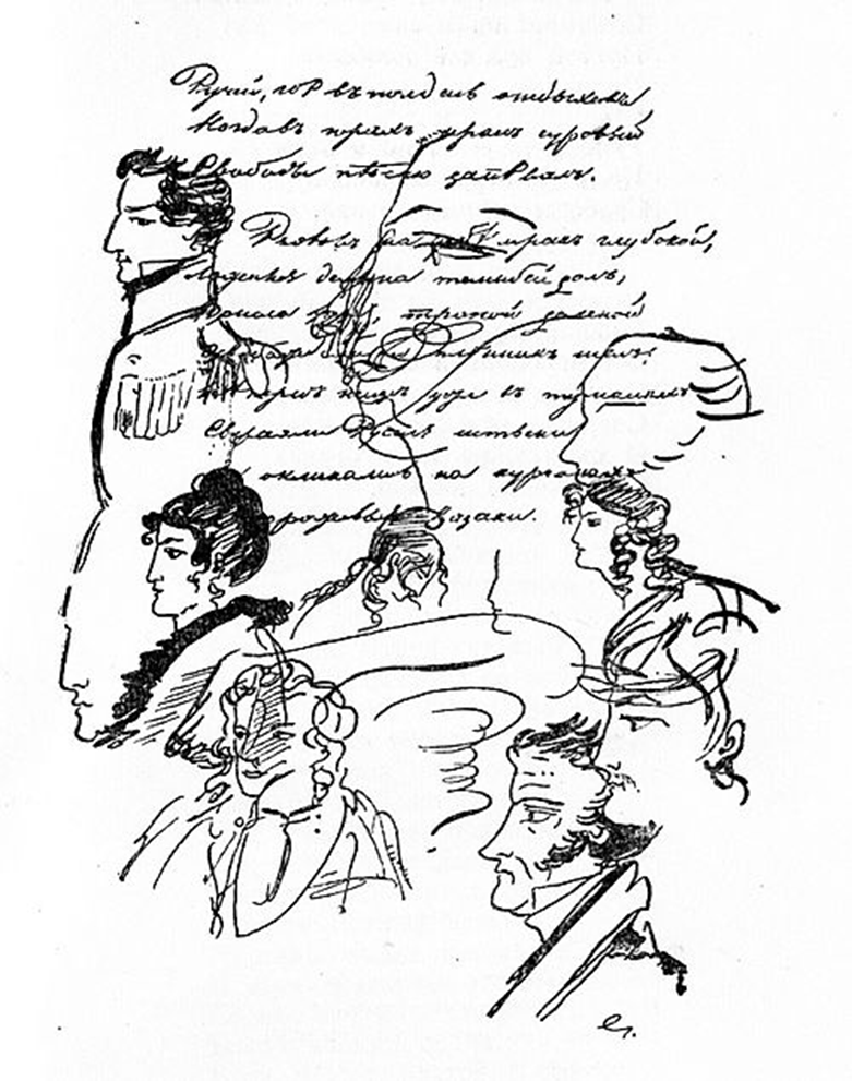俄罗斯浪漫主义时期诗人普希金在手稿中的涂鸦绘画(图片来源:维基百科)