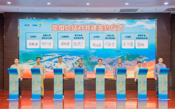▲中广核在阳各产业公司党组织与东平镇10个行政村、1个渔委会党组织进行结对共建