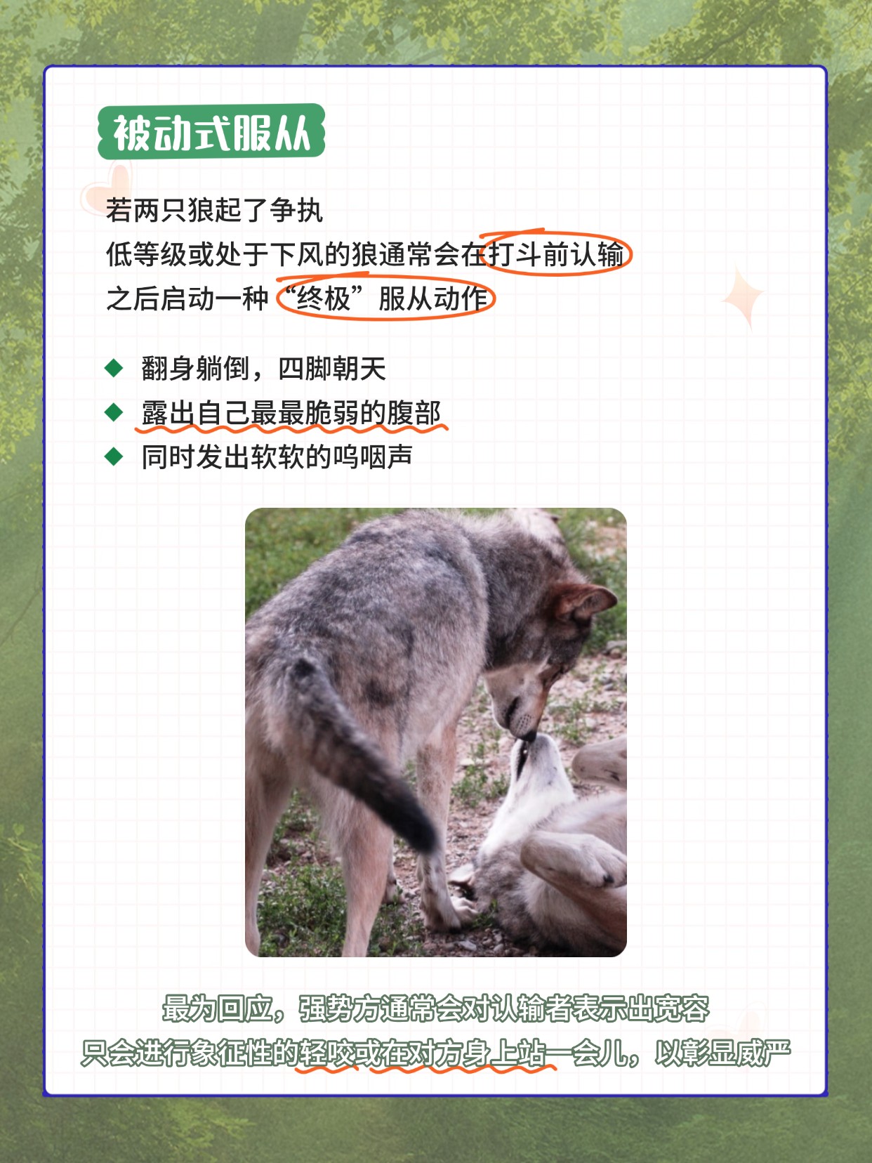 狼群的很多“服从动作”其实在狗狗身上也有体现哦!