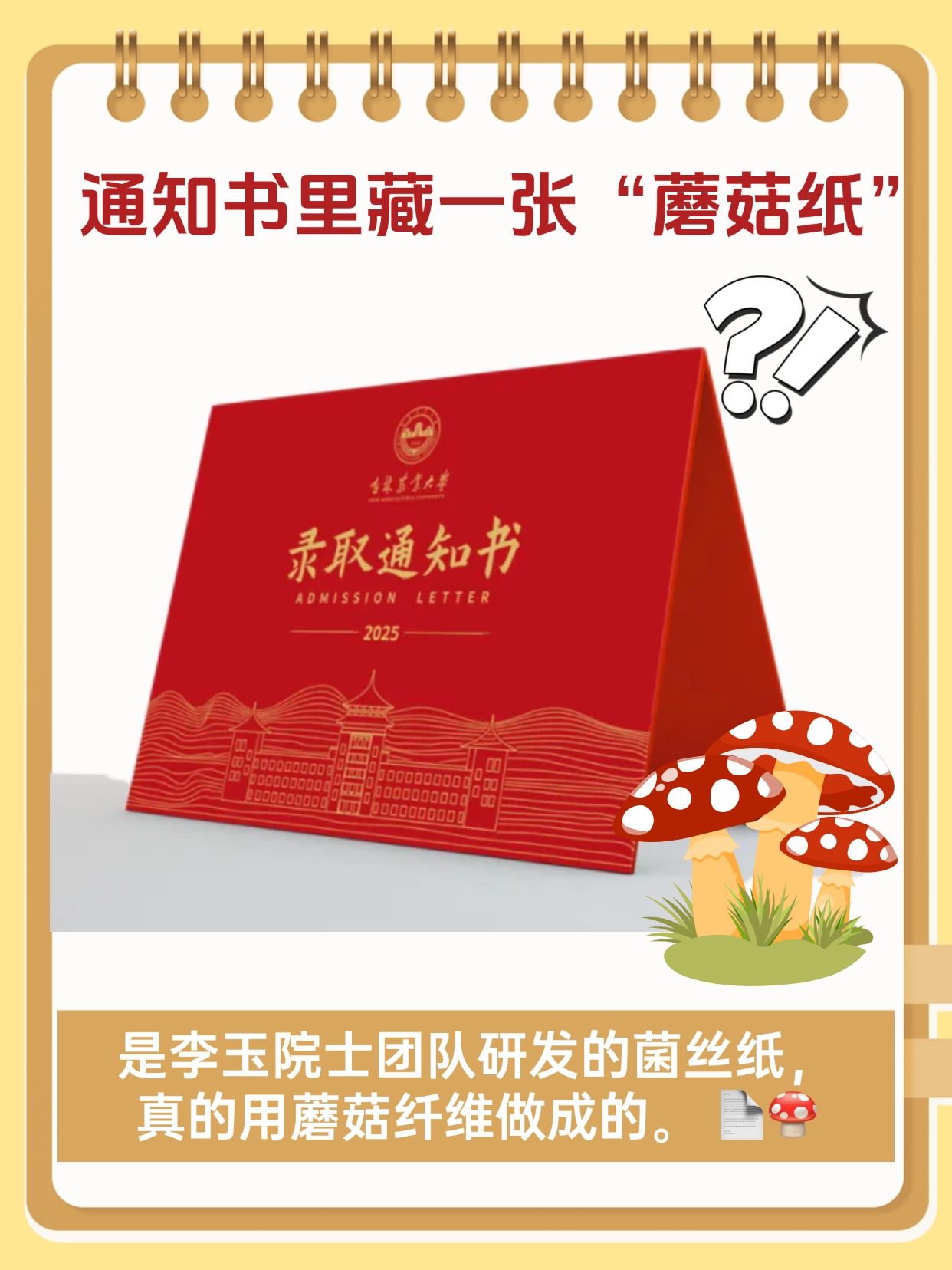 #吉林农业大学 #蘑菇纸 #菌丝体材料 #录取通知书创意 #高校通知书大赏
