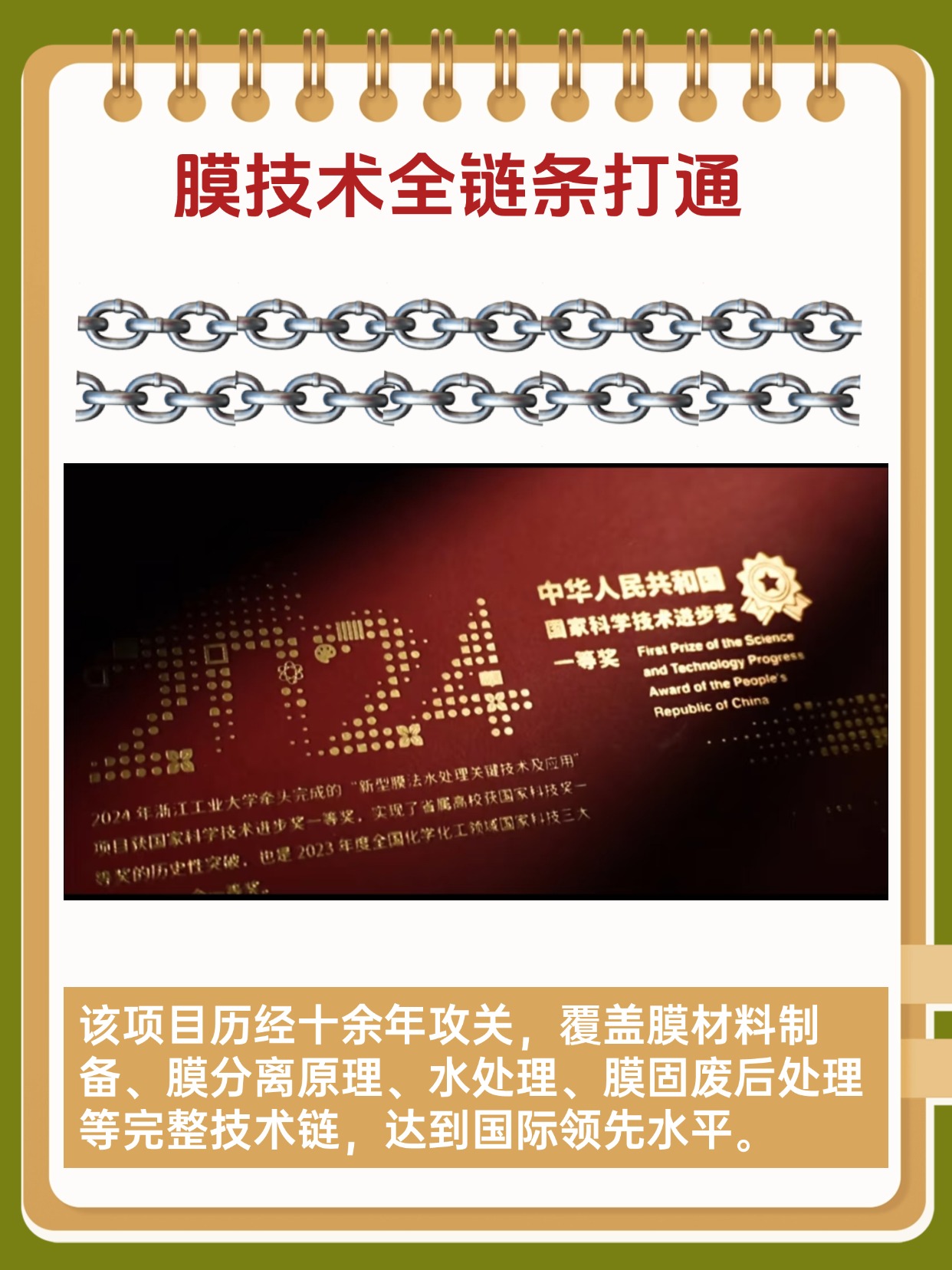 源自获得国家科技进步一等奖的“新型膜法水处理关键技术及应用”项目,历经十年工程科研耕耘,让这张通知书既环保又有技术感。