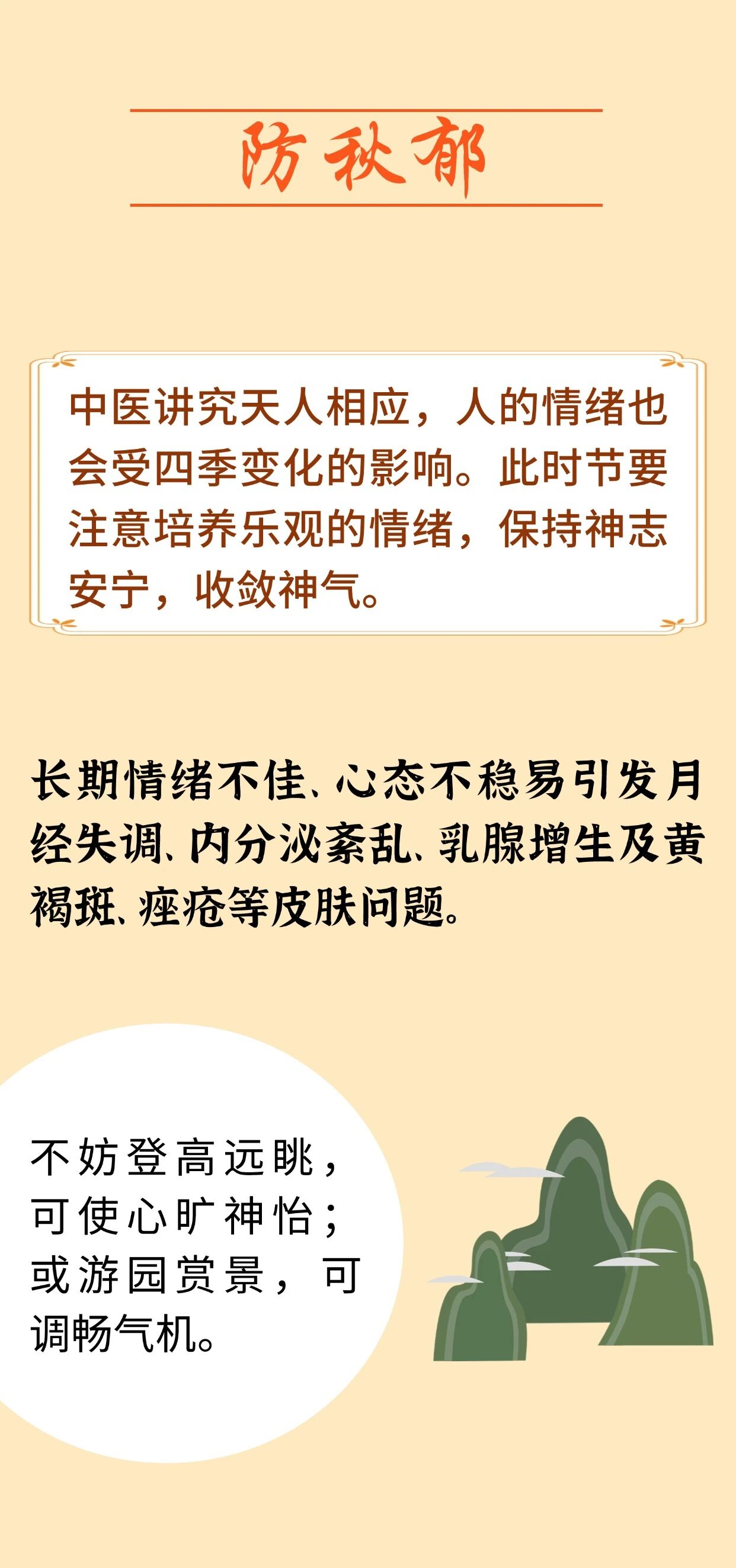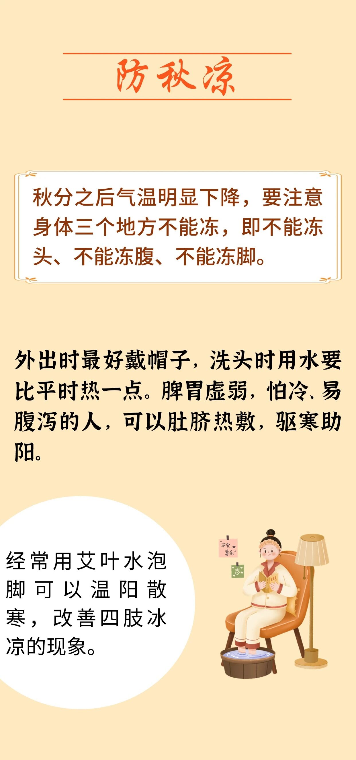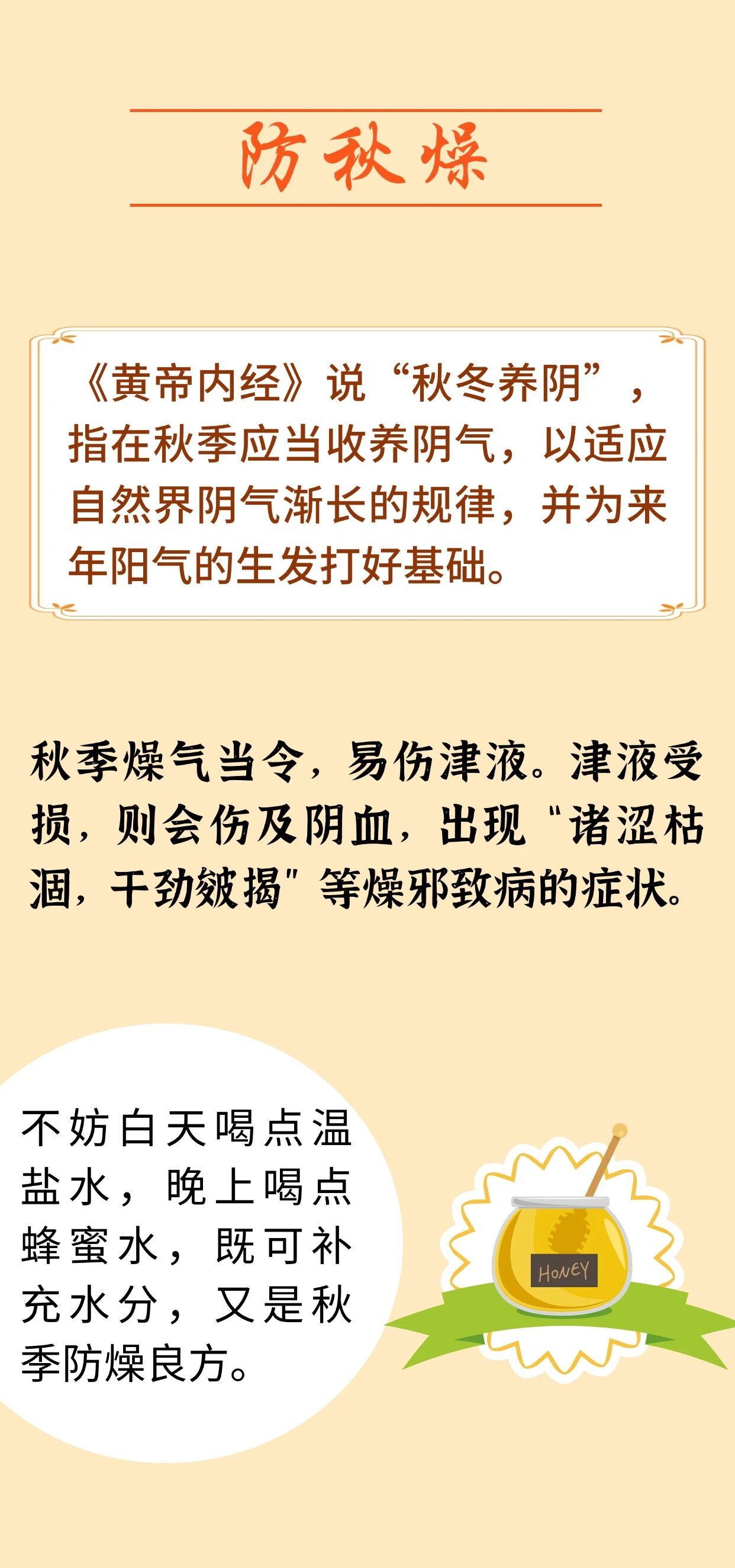 明代医家张景岳言:“秋分前热而后寒,前则夜短昼长,后则昼短夜长,此寒热昼夜之分也。”秋分过后,白昼渐短,夜晚渐长,气温下降明显,此时节养生要做到“四防一固”,即防秋燥、防秋凉、防秋乏、防秋郁、固正气。来 源:首都中医