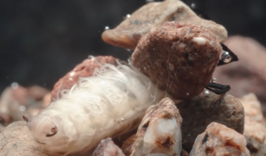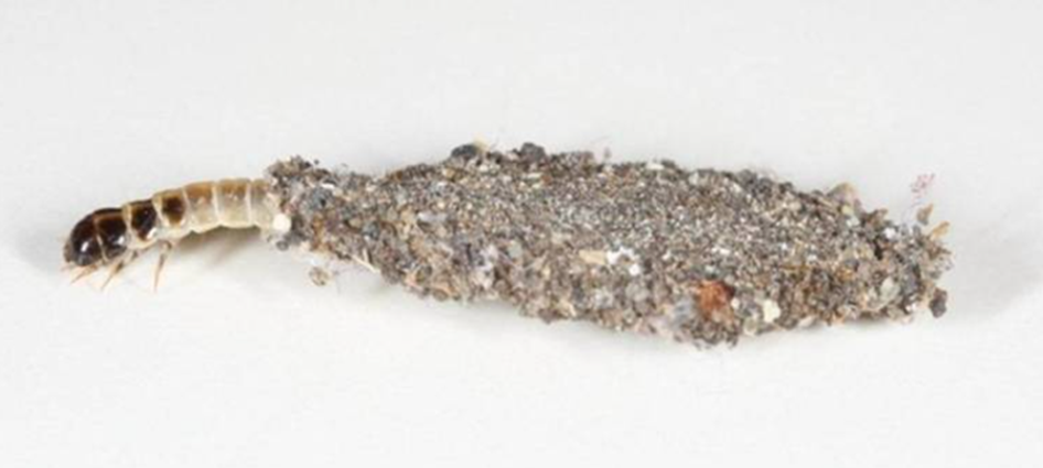 石蛾是一种长得像小飞蛾的昆虫,但它的童年完全在水中度过。它的幼虫,又叫作石蚕,长得就像一条柔软的小肉虫。在危机四伏的水下世界,这样一副“鲜嫩多汁”的模样,简直就是鱼儿和其他捕食者的“上门外卖”。