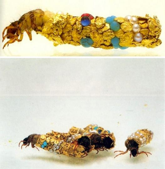 有些国外的艺术家还为石蚕幼虫提供珍珠、金粒、宝石作为“砖块”,让这些小建筑师打造出了简单而奢华的城堡。
