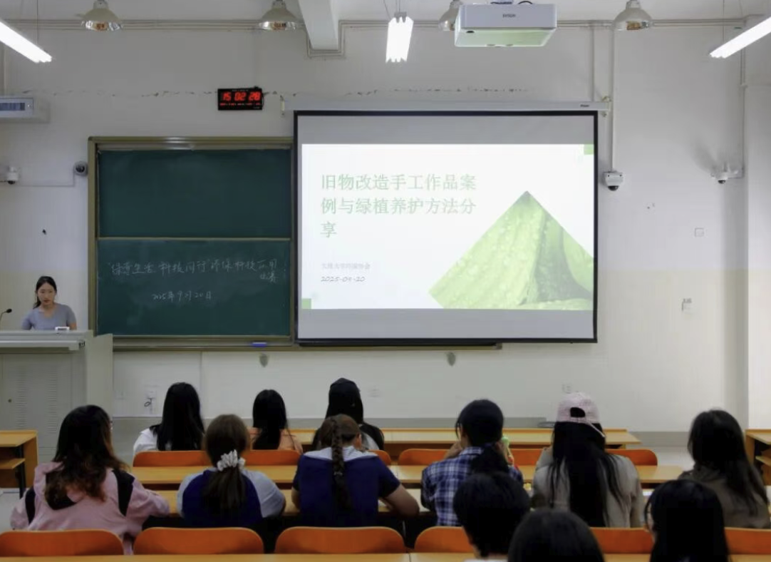 活动现场,环保协会工作人员结合实际案例,向在场学生细致科普旧物改造手工作品的创意思路与制作技巧,同时分享绿植养护的实用方法。内容通俗易懂,为同学们搭建起环保实践的知识框架,现场互动氛围热烈。