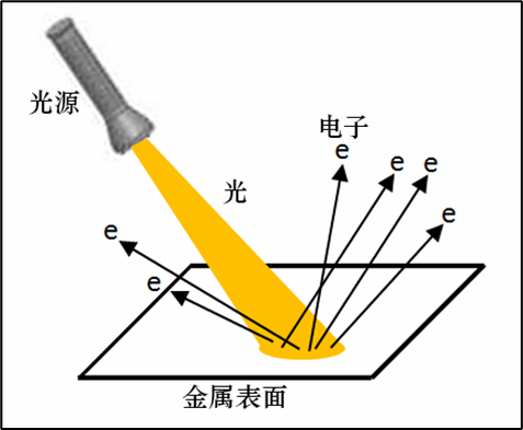 光电效应示意图。其中“e”正是代表电子的符号。来源:Erdal Taslidere
