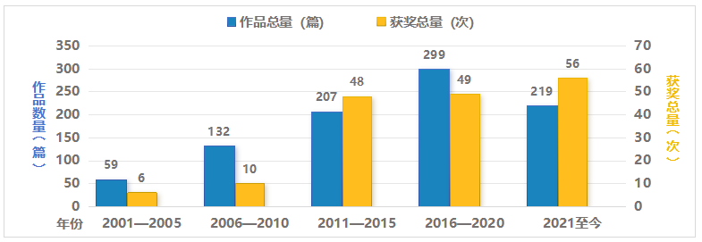 图1 主要中国科幻女作家创作与获奖趋势(2001年至今)